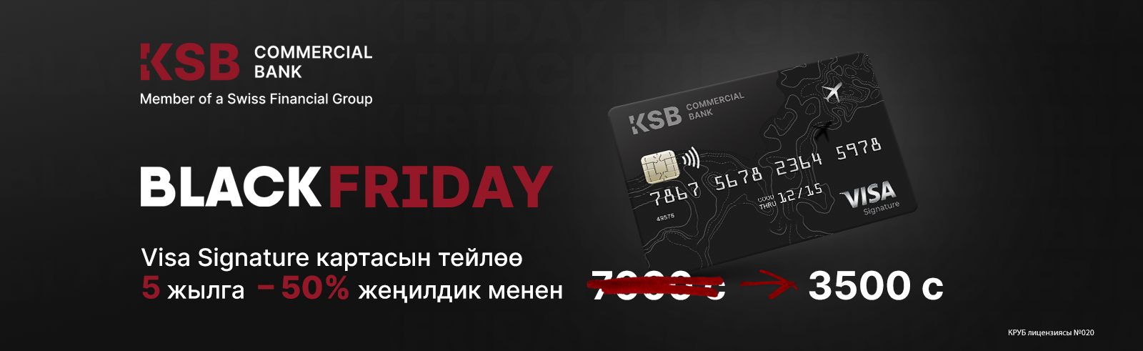 Коммерциялык банк КСБ премиалдык Visa Signature картасы боюнча Black Friday акциясын жарыялайт.